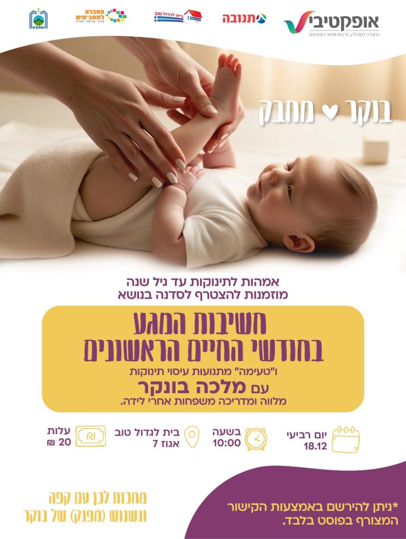 בוקר מחבק - סדנה בנושא "חשיבות המגע בחודשי החיים הראשונים" עם מלכה בונקר